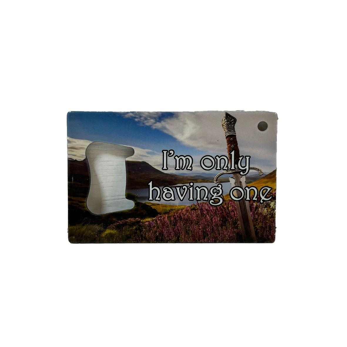 Crack open your favourite drink with a smile using our “Ah'm Just Haein' The Wan” bottle opener. Featuring a bold Scottish phrase that’s perfect for a cheeky night in or a gift with Highland humour, this opener is both fun and practical.