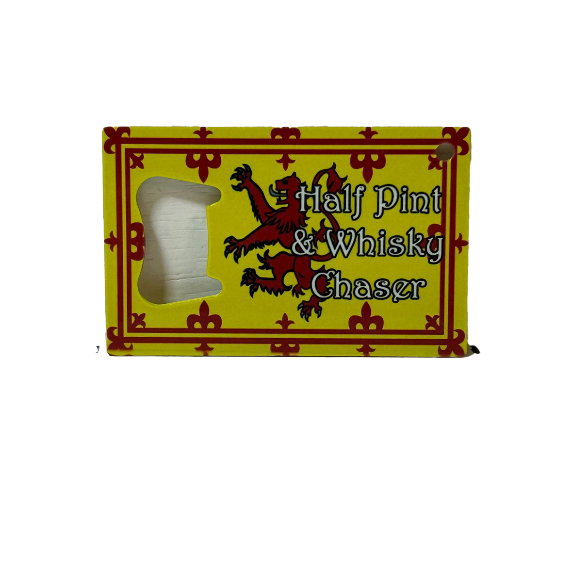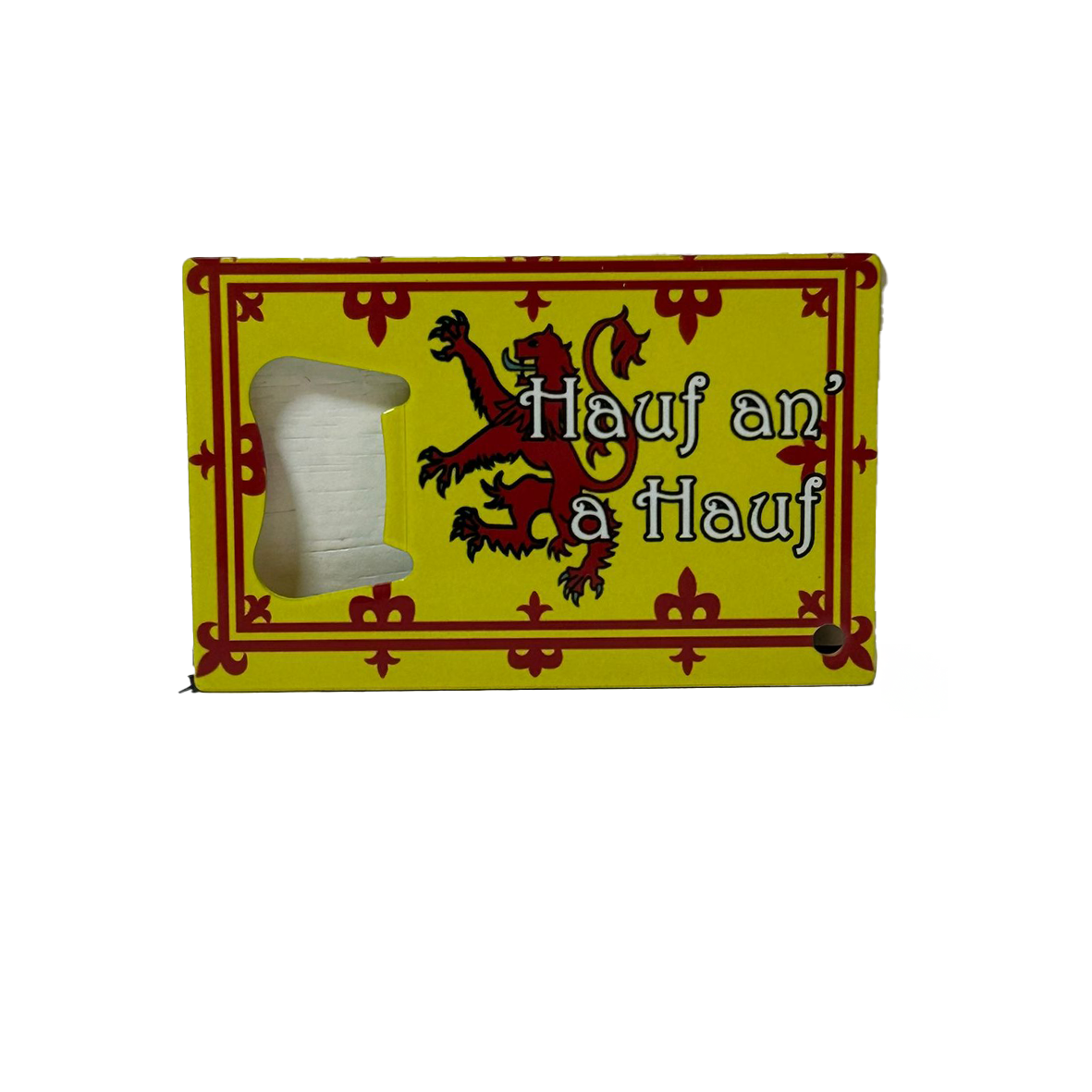 Celebrate a classic Scottish drinking tradition with our “Hauf an’ a Hauf” bottle opener. Inspired by the well-loved combo of a dram and a pint, this opener is perfect for whisky and beer lovers alike.